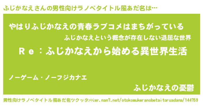 | 肩書あだ名 | 『ふじかなえ閣下』『ふじかなえ国家主席』 |