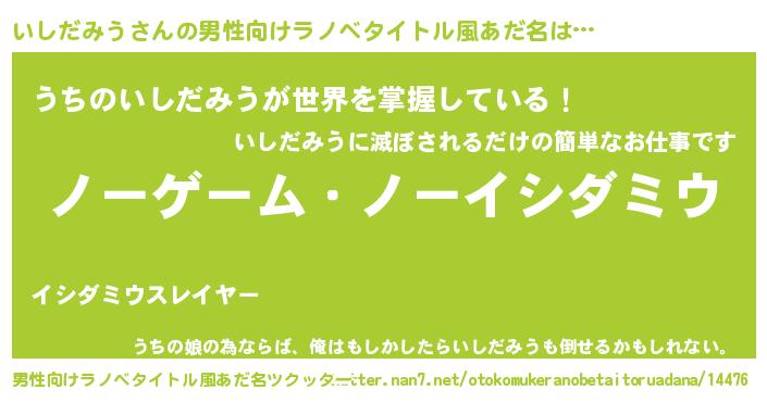 | 女子向けラノベタイトル風あだ名 | 『死神いしだみうの再婚』 |