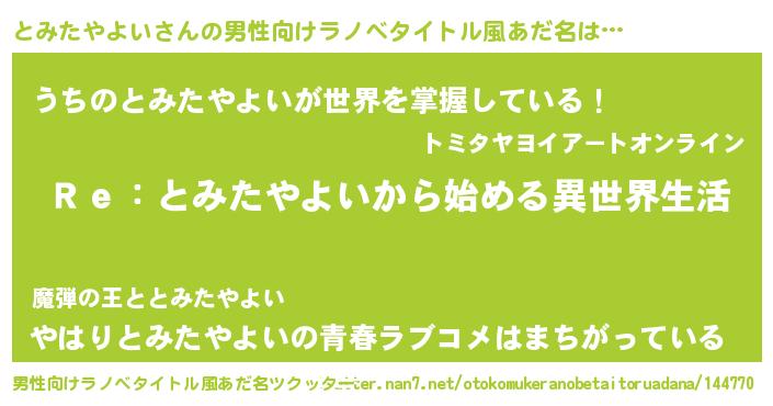 | 意味不明あだ名 | 『自称とみたやよい』 |