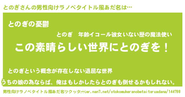 | 意味不明あだ名 | 『住所不定無職とのぎ(53歳)』 |