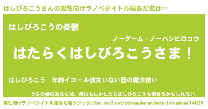 | 胡散臭い通販商品みたいなあだ名 | 『必ず成功する水晶球…その名も「はしびろこう」』 |