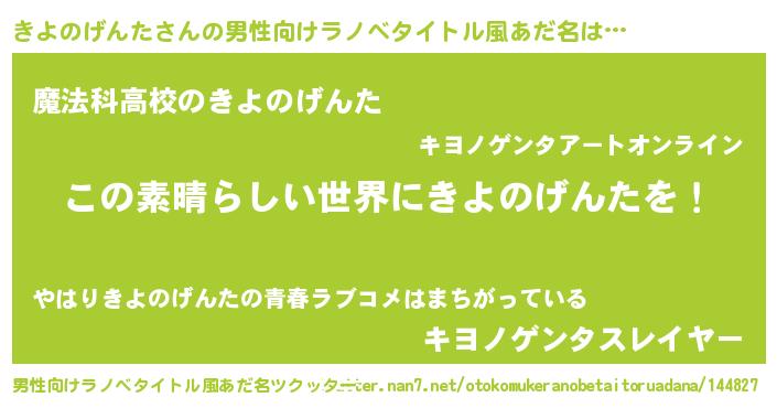 | 女子向けラノベタイトル風あだ名 | 『乙女ゲームの破滅フラグしかない悪役きよのげんたに転生してしまった…』 |