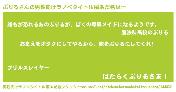 | 女子向けラノベタイトル風あだ名 | 『ぶりる夫妻のなれそめ』 |