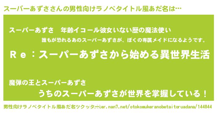 | 女子向けラノベタイトル風あだ名 | 『闇のスーパーあずさ』 |