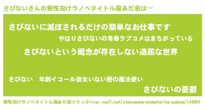 ヘコむあだ名 | 『さびない(小並感)』『さびにゅー』 |