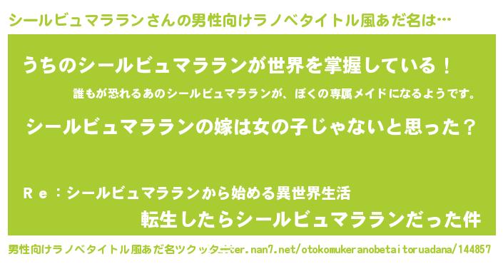 | 女子向けラノベタイトル風あだ名 | 『シールビュマララン様がみてる』 |