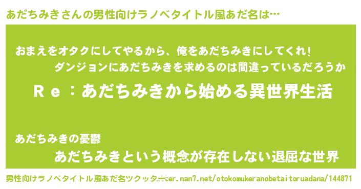 | 女子向けラノベタイトル風あだ名 | 『あだちみきストレイドッグス』 |