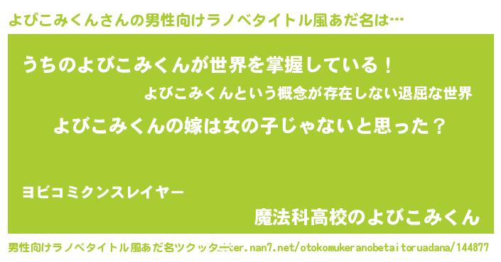 | 女子向けラノベタイトル風あだ名 | 『よびこみくん様がみてる』 |