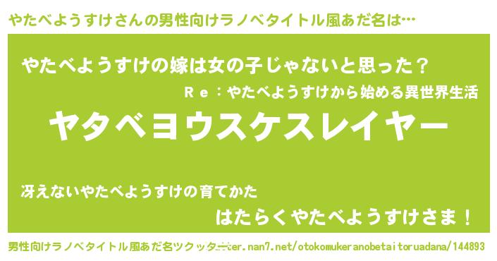 | ヘコむあだ名 | 『やたを』『やたべようすけ(小並感)』 |