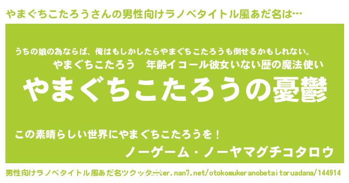 | 女子向けラノベタイトル風あだ名 | 『(仮)やまぐちこたろうのやんごとなき事情』 |