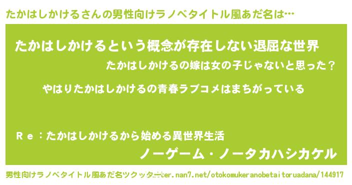 | 女子向けラノベタイトル風あだ名 | 『たかはしかけるの雑貨屋さん』 |