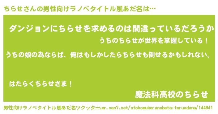 | 女子向けラノベタイトル風あだ名 | 『ちらせの婚約者』『ちらせは平凡を望む』 |