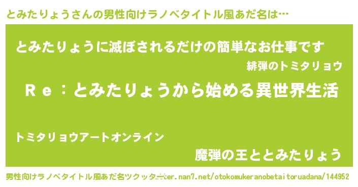 女子向けラノベタイトル風あだ名 | 『とみたりょうストレイドッグス』 |