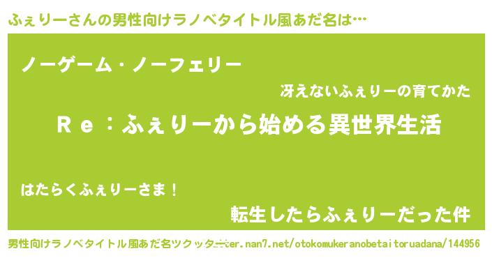 | ヘコむあだ名 | 『ふぇもー』『なまこ酢』『ふぇっ子』 |