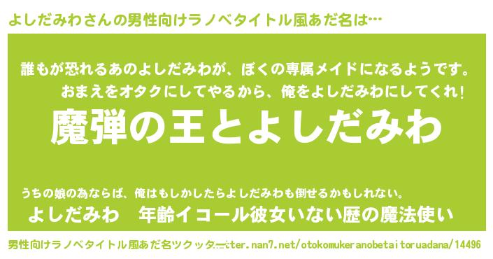 | 意味不明あだ名 | 『住所不定無職よしだみわ(41歳)』 |