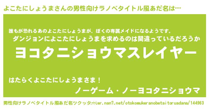 | ヒーロー風カッコイイあだ名 | 『ネオヨコタニショウマ』『暗黒騎士ヨコ』 |