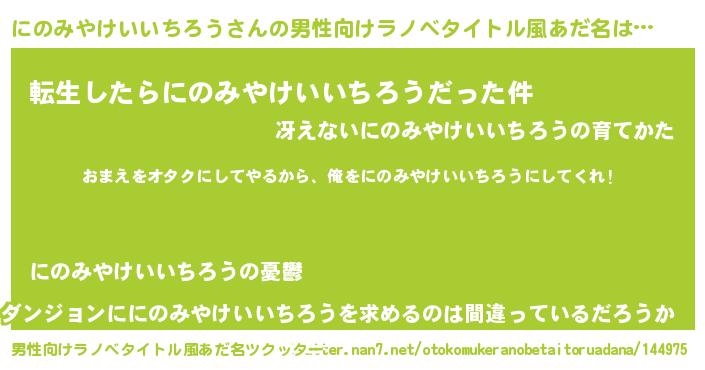 | 女子向けラノベタイトル風あだ名 | 『にのみやけいいちろう夫妻のなれそめ』 |