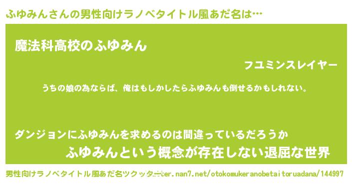 | ファンタジー風あだ名 | 『エターナルフユミンー』『ゼフユトゥ』 |