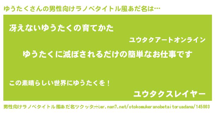 | 胡散臭い通販商品みたいなあだ名 | 『モテモテ間違いなし霊験あらたかなお札…その名も「ゆうたく」』 |