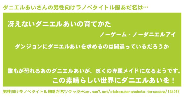 | ヘコむあだ名 | 『ダニぷりん』『ダニエルあい(苦笑)』 |