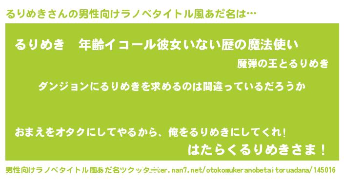 | 女子向けラノベタイトル風あだ名 | 『るりめきは平凡を望む』 |