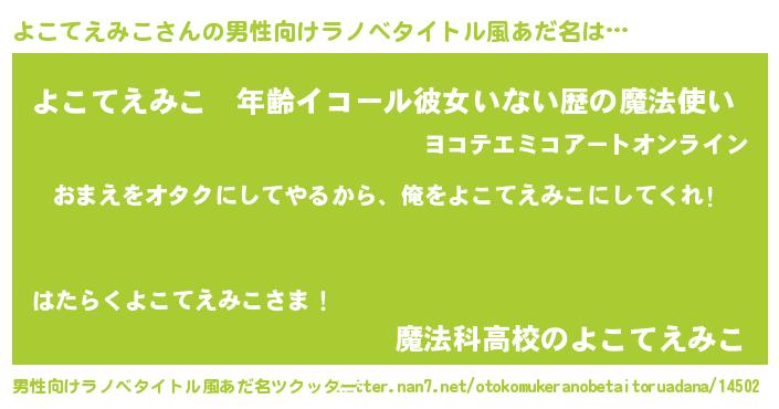 | 欧米人風あだ名 | 『ダニエルよこてえみこ』 |