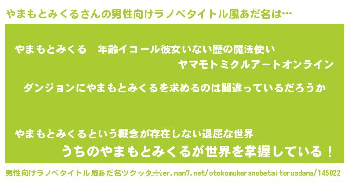 | 女子向けラノベタイトル風あだ名 | 『やまもとみくるの卵を拾いまして』 |