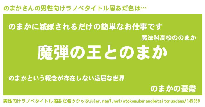 | 意味不明あだ名 | 『住所不定無職のまか(85歳)』『自称のまか』 |