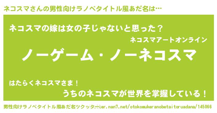 | 女子向けラノベタイトル風あだ名 | 『死神ネコスマの再婚』 |