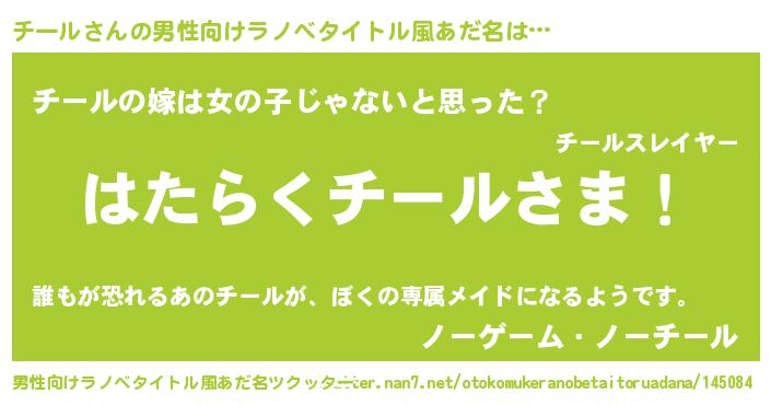 | 胡散臭い通販商品みたいなあだ名 | 『信頼と実績のネックレス…その名も「チール」』 |
