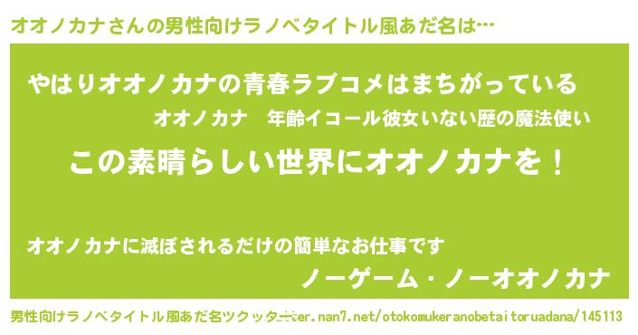 | 意味不明あだ名 | 『住所不定無職オオノカナ(65歳)』 |