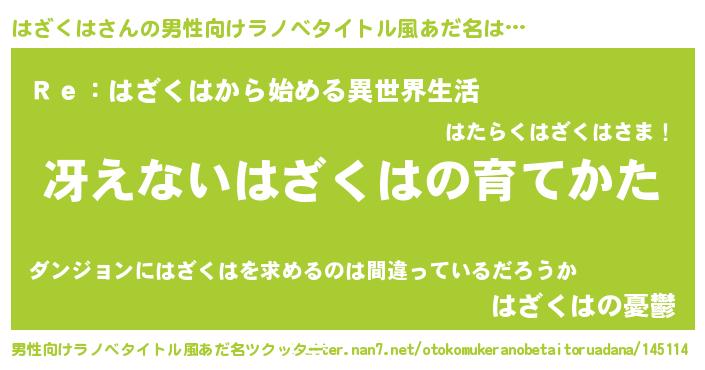 | 女子向けラノベタイトル風あだ名 | 『シンデレラはざくは家の靴箱館』 |