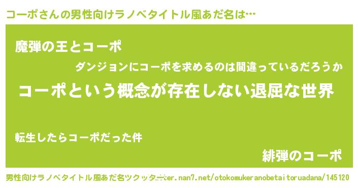 | 胡散臭い通販商品みたいなあだ名 | 『絶対に幸福をもたらす招き猫…その名も「コーポ」』 |