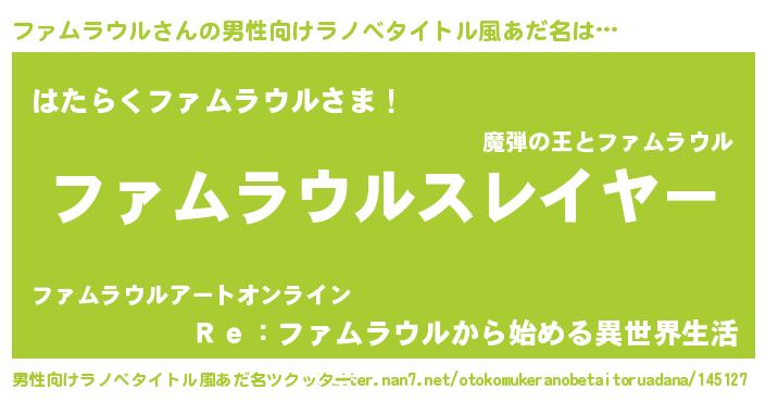 | 肩書あだ名 | 『ファムラウル中尉』『ファムラウル総統』 |