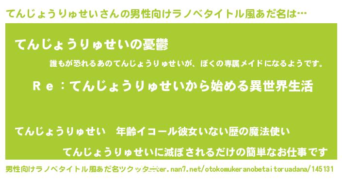 | 意味不明あだ名 | 『自称てんじょうりゅせい』 |