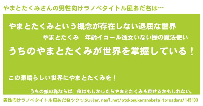 | ヒーロー風カッコイイあだ名 | 『ネオヤマトタクミ』『仮面ヤマダー』 |
