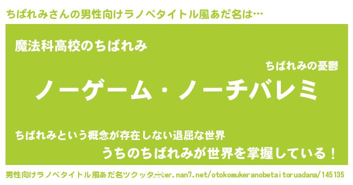 | 女子向けラノベタイトル風あだ名 | 『死神ちばれみの再婚』 |