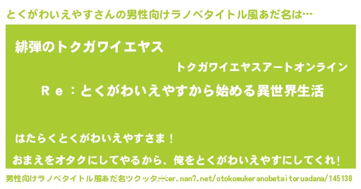 | 女子向けラノベタイトル風あだ名 | 『とくがわいえやすストレイドッグス』 |