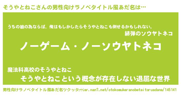 | 胡散臭い通販商品みたいなあだ名 | 『お金では代えられない隕石のかけら…その名も「そうやとねこ」』 |