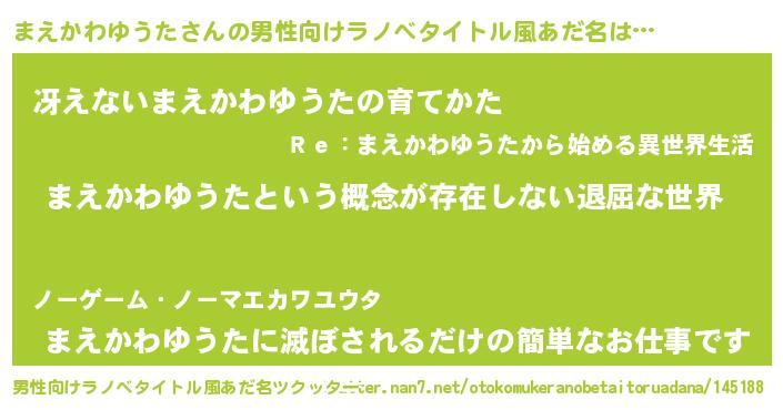 | 胡散臭い通販商品みたいなあだ名 | 『来世でも幸せになれる健康食品…その名も「まえかわゆうた」』 |