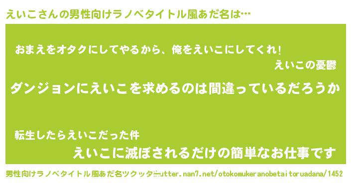 | 胡散臭い通販商品みたいなあだ名 | 『伝統あるサプリメント…その名も「えいこ」』 |