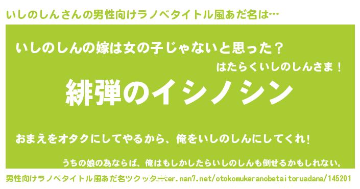 | 胡散臭い通販商品みたいなあだ名 | 『信頼と実績のペンダント…その名も「いしのしん」』 |