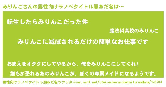 | 女子向けラノベタイトル風あだ名 | 『横柄みりんこと宰相陛下』 |