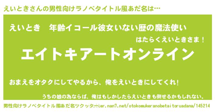 | 胡散臭い通販商品みたいなあだ名 | 『億万長者になれる霊験あらたかなお札…その名も「えいとき」』 |