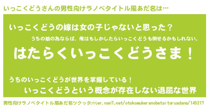 | 胡散臭い通販商品みたいなあだ名 | 『信頼と実績のサプリメント…その名も「いっこくどう」』 |