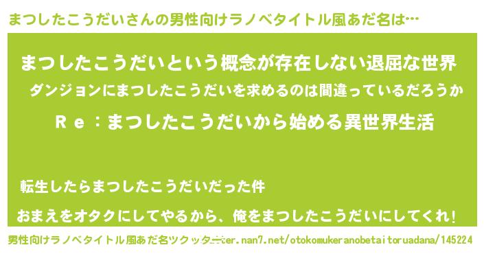| 欧米人風あだ名 | 『ケンブリッジまつしたこうだい』 |