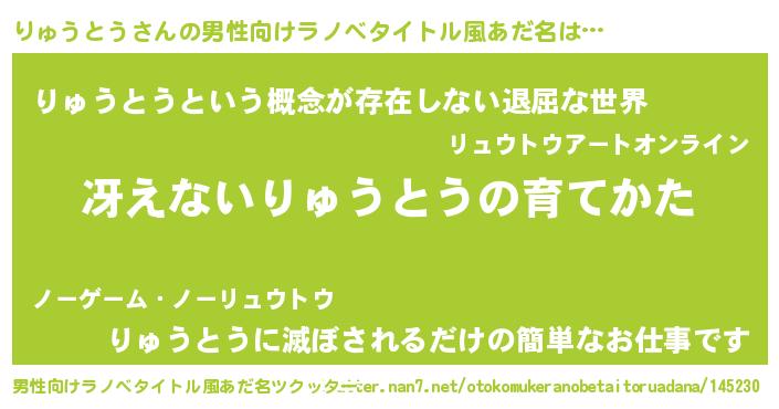 | ヘコむあだ名 | 『りゅうとう(遠い目)』『りゅもー』 |