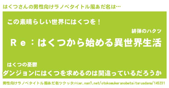 | 意味不明あだ名 | 『自称はくつ』『住所不定無職はくつ(56歳)』 |