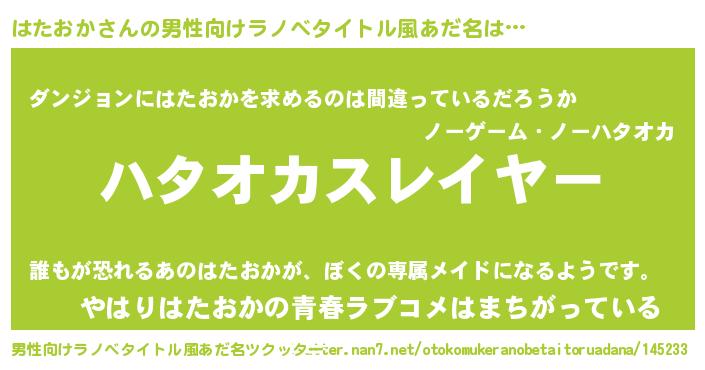 | ヘコむあだ名 | 『はたを』『つくし』『はたおか(笑)』 |