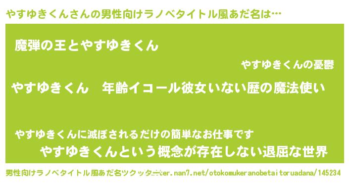 やすゆきくんさんの男性向けラノベタイトル風あだ名をツクッター!